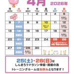 | 2026/03/21 | トレーニングルーム 4月の営業カレンダー | ||