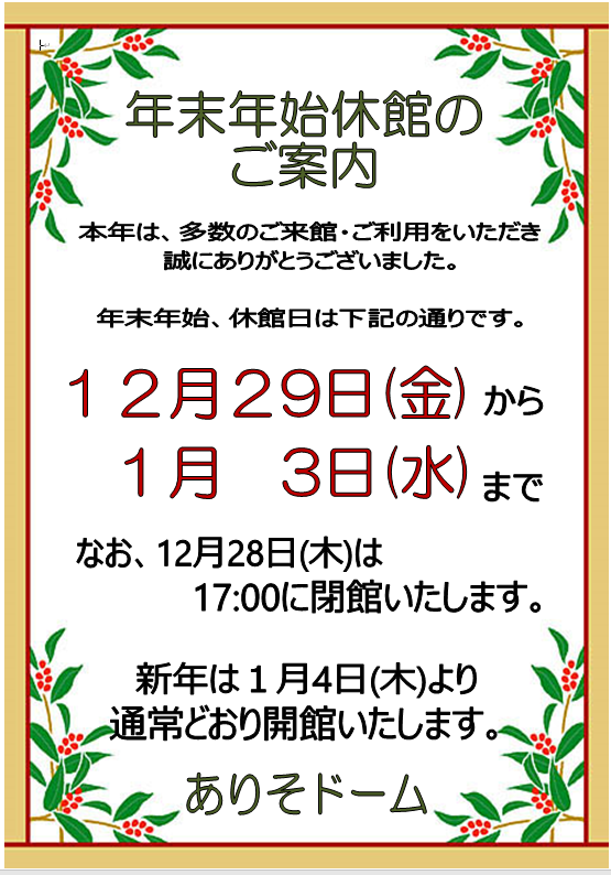 • ありトレのご案内 利用案内・スタジオプログラムなど バナー