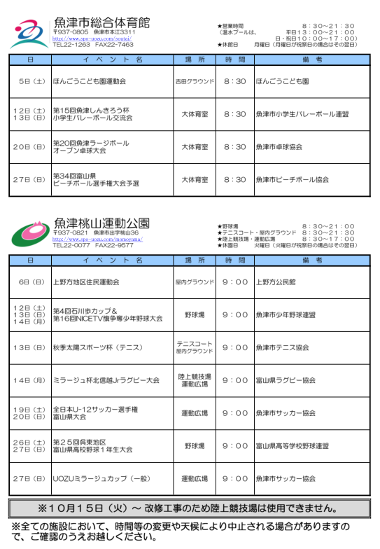 魚津テクノスポーツドーム・産業展示ホール・トレーニングルーム