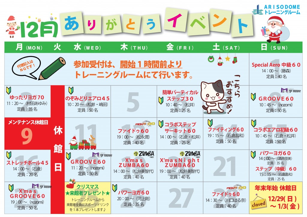 • ありトレのご案内 利用案内・スタジオプログラムなど バナー