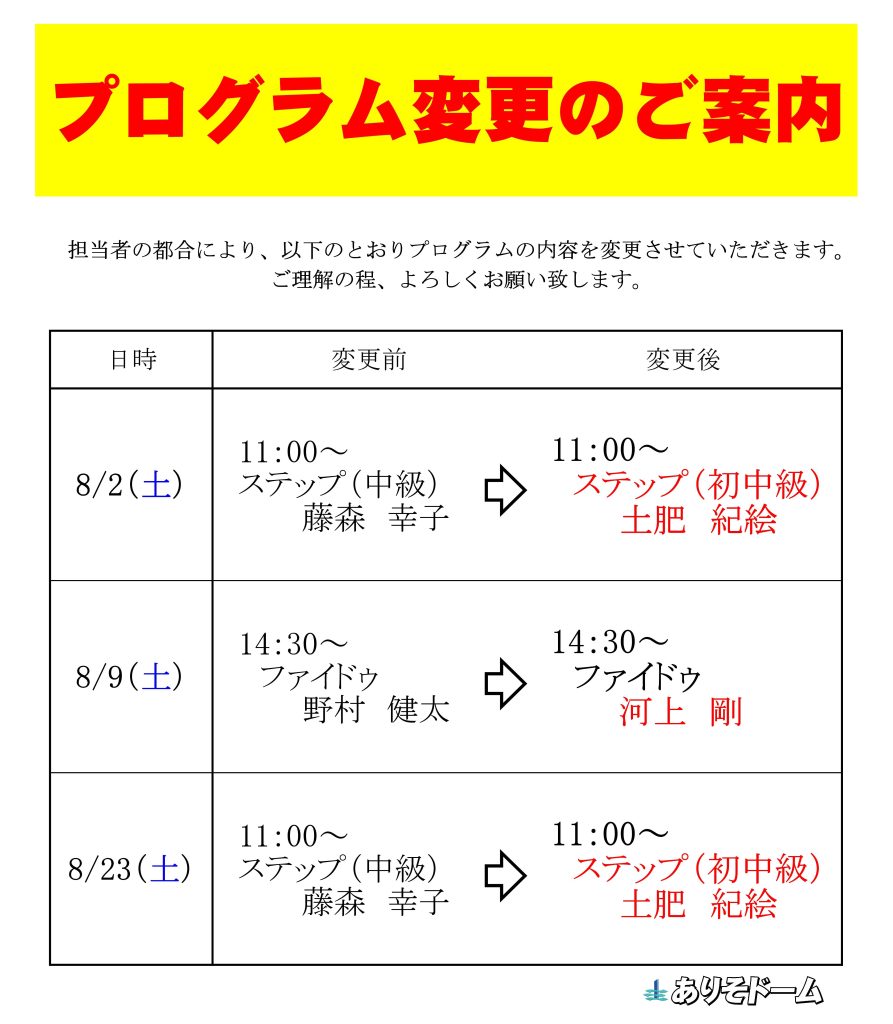 8月プログラム変更