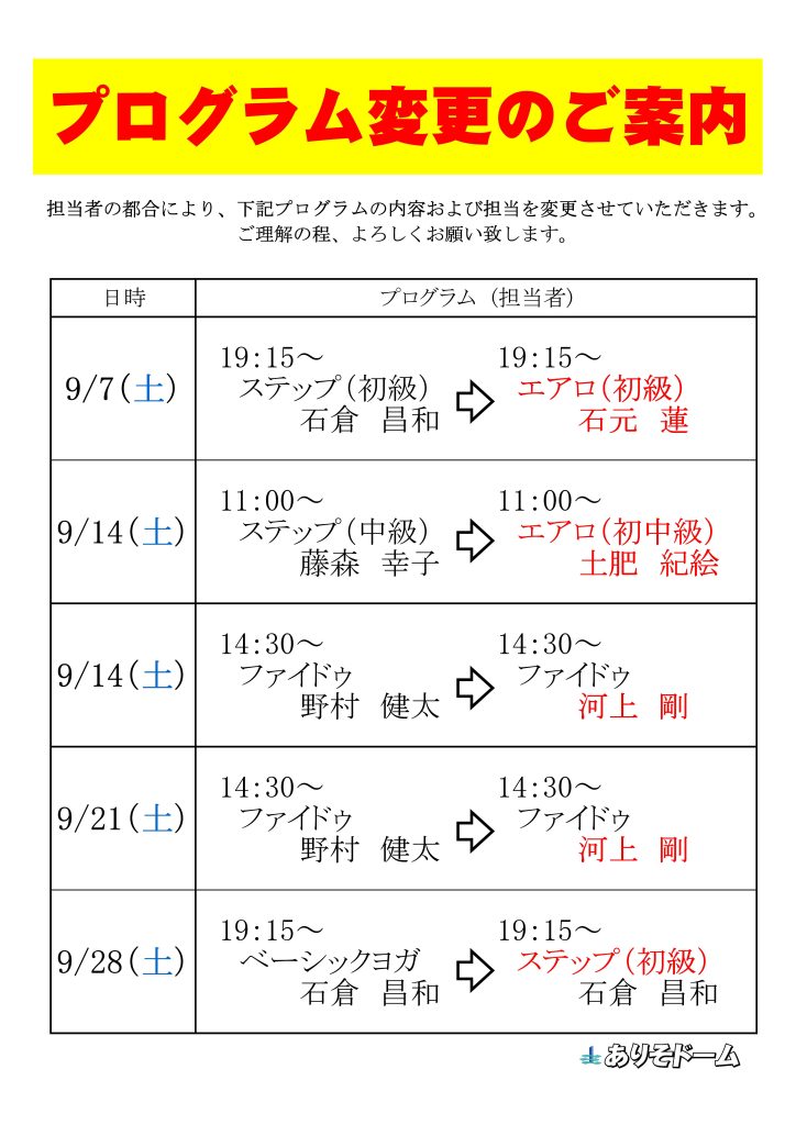 9月プログラム変更案内