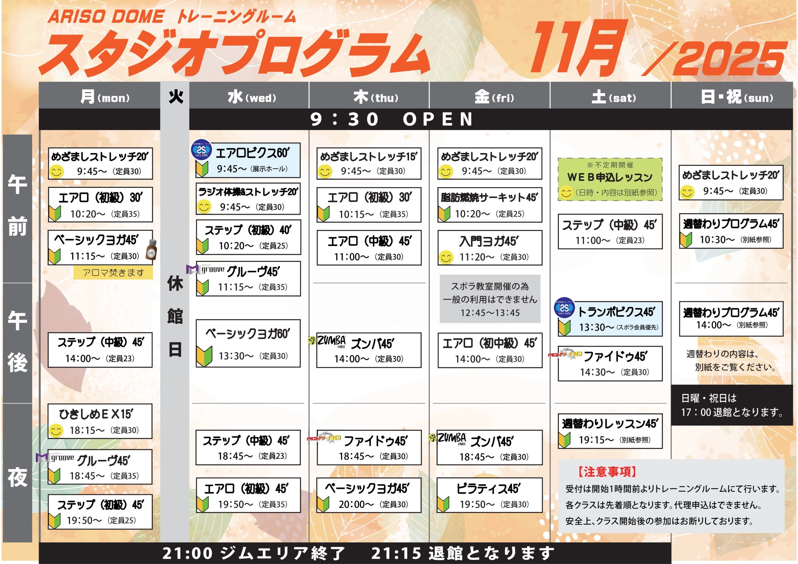 10月タイムテーブル 10月週替わり プログラム内容 11月タイムテーブル 11月週替わり
