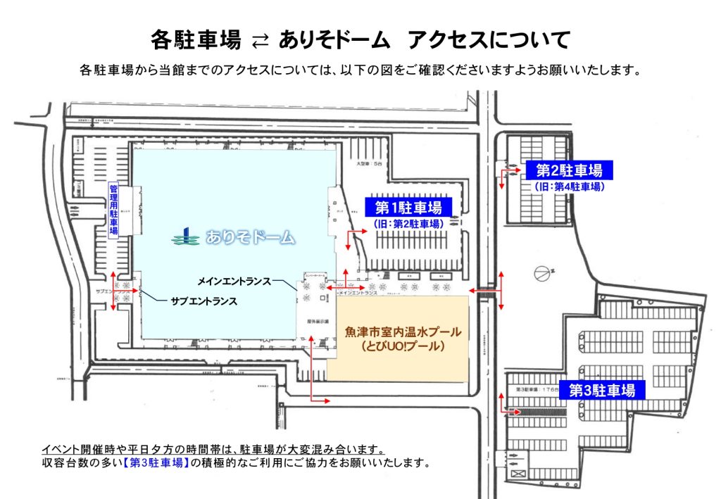 大規模イベント開催時は、ありそドームとなり『魚津市浄化センター』の駐車場を臨時開放いたします。
