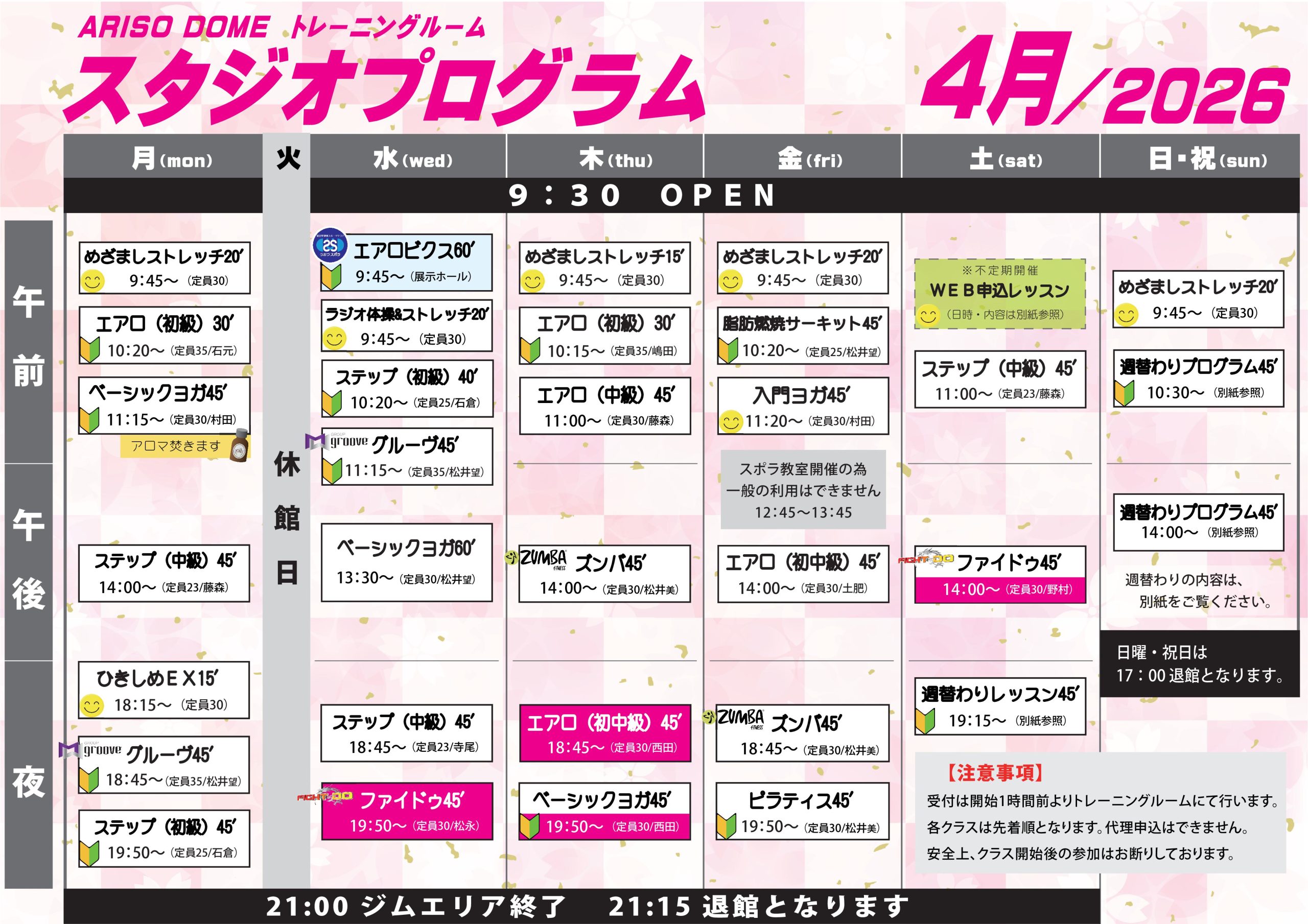 2月タイムテーブル 2月週替わり プログラム内容 3月タイムテーブル 3月週替わり 4月タイムテーブル
