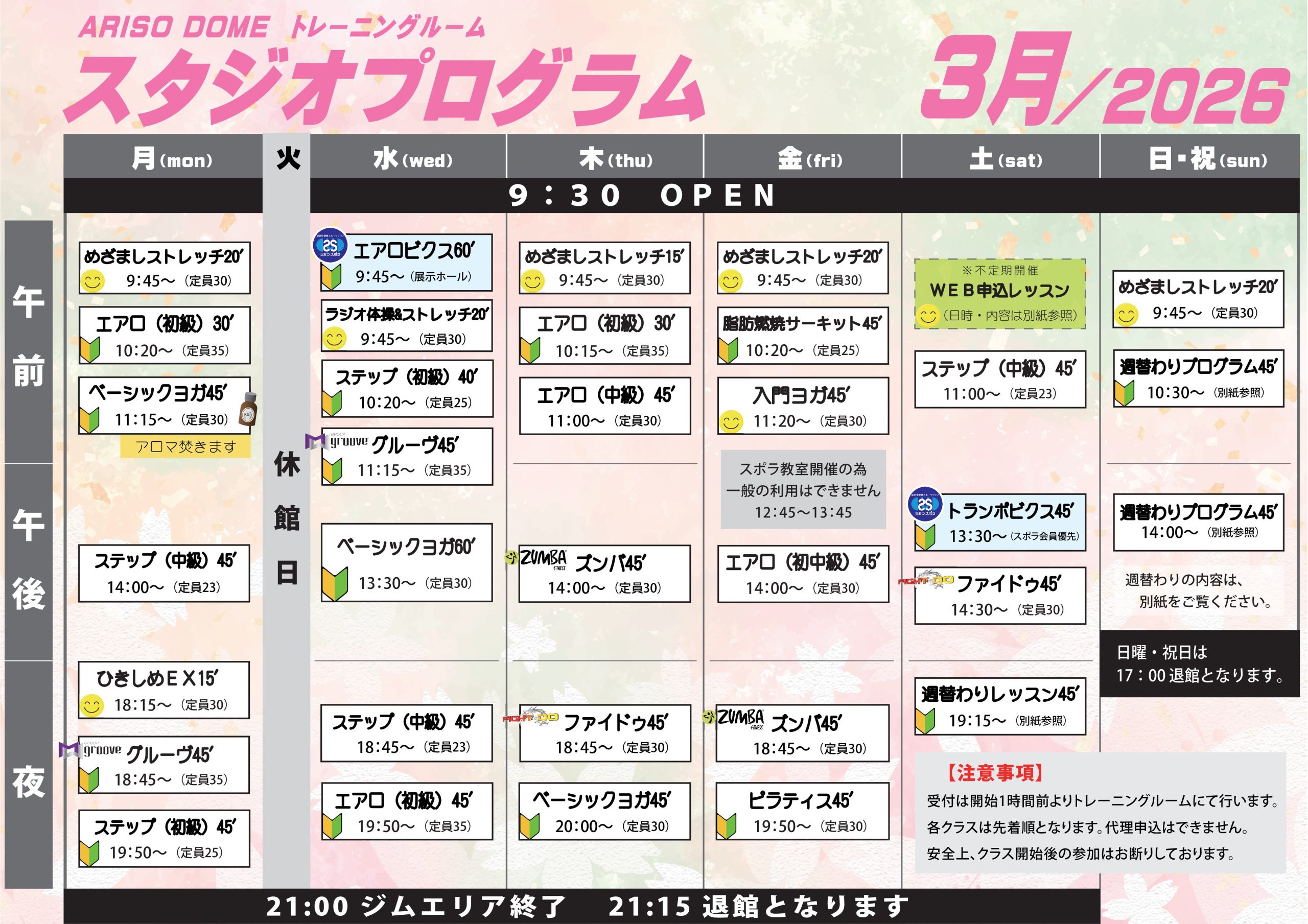 2月タイムテーブル  2月週替わり  プログラム内容  3月タイムテーブル  3月週替わり