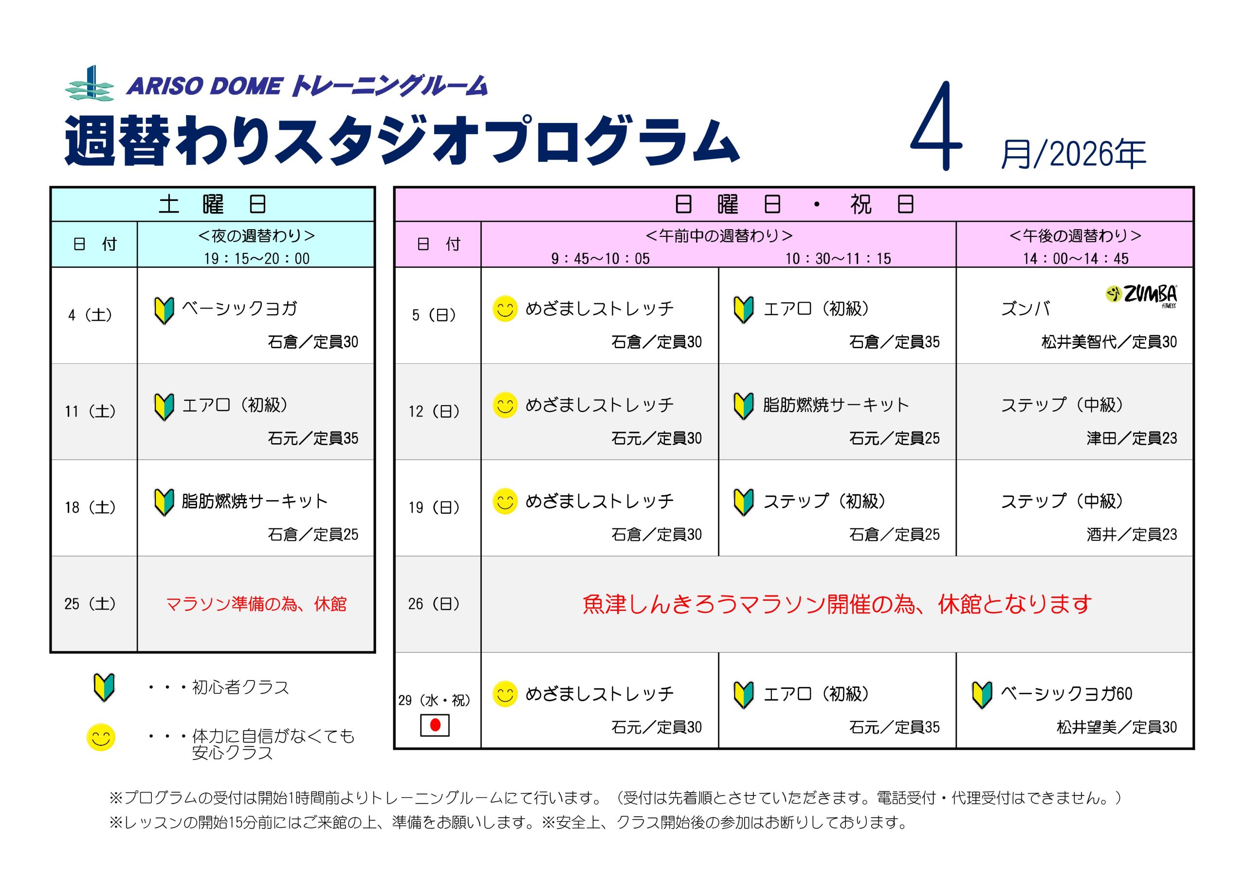 3月タイムテーブル  3月週替わり  プログラム内容  4月タイムテーブル  4月週替わり